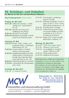 19.15 Uhr Abholen des Königs und 14.45 Uhr Aufstellung des Festzuges